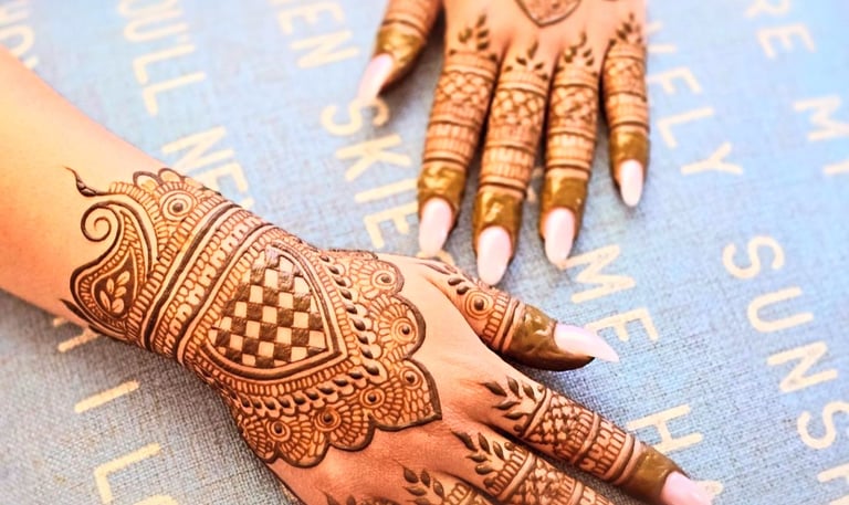 Discover our latest henna designs that showcase our artistry and creativity, serving clients in the Bay Area and beyond with unique and beautiful henna applications.